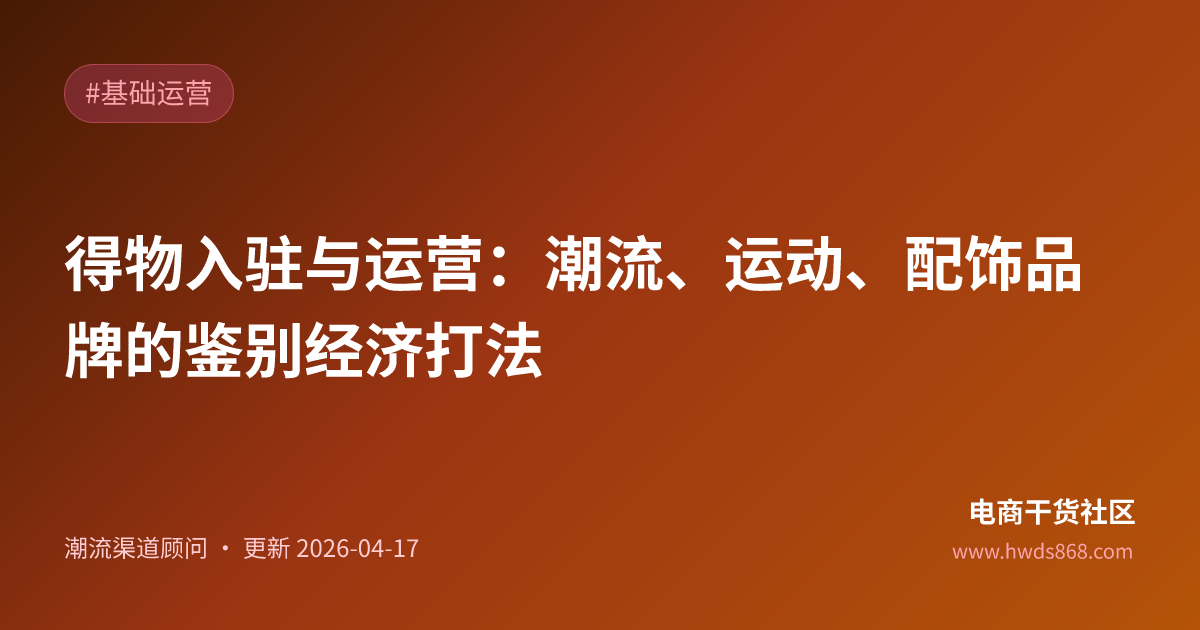 得物以「鉴别为先」的潮流电商定位为主,是球鞋、潮玩、奢侈品配饰、运动装备等品类不可忽视的渠道。本文给出入驻准备、商品上架、价格与库存策略、品牌内容、客户分层、售后与鉴别流程的完整路径。