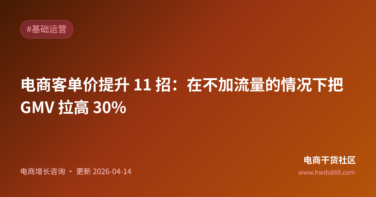 11 招配合着用,3 个月内把店铺客单价拉高 30% 不是难事。这比你额外花几万块投流量性价比高得多。