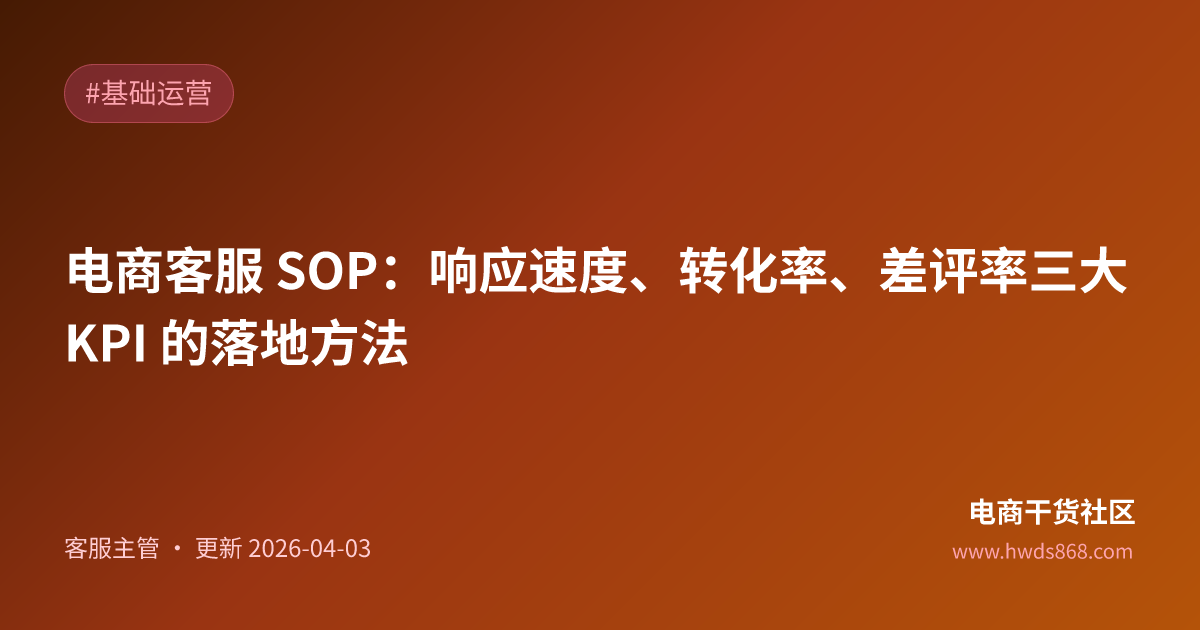 电商客服 SOP:响应速度、转化率、差评率三大 KPI 的落地方法