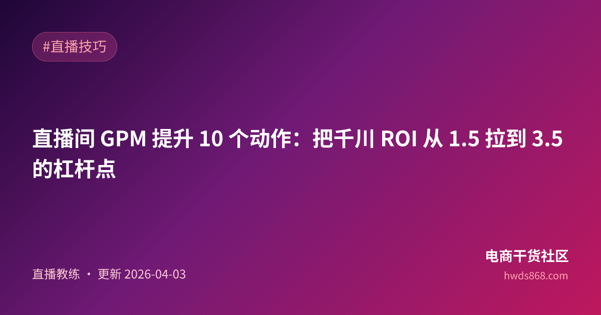 直播间 GPM 提升 10 个动作:把千川 ROI 从 1.5 拉到 3.5 的杠杆点